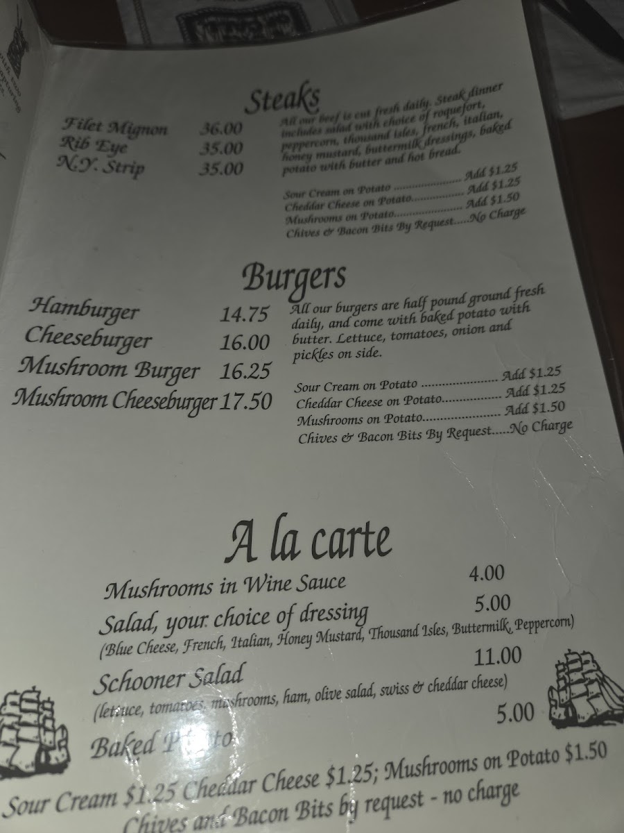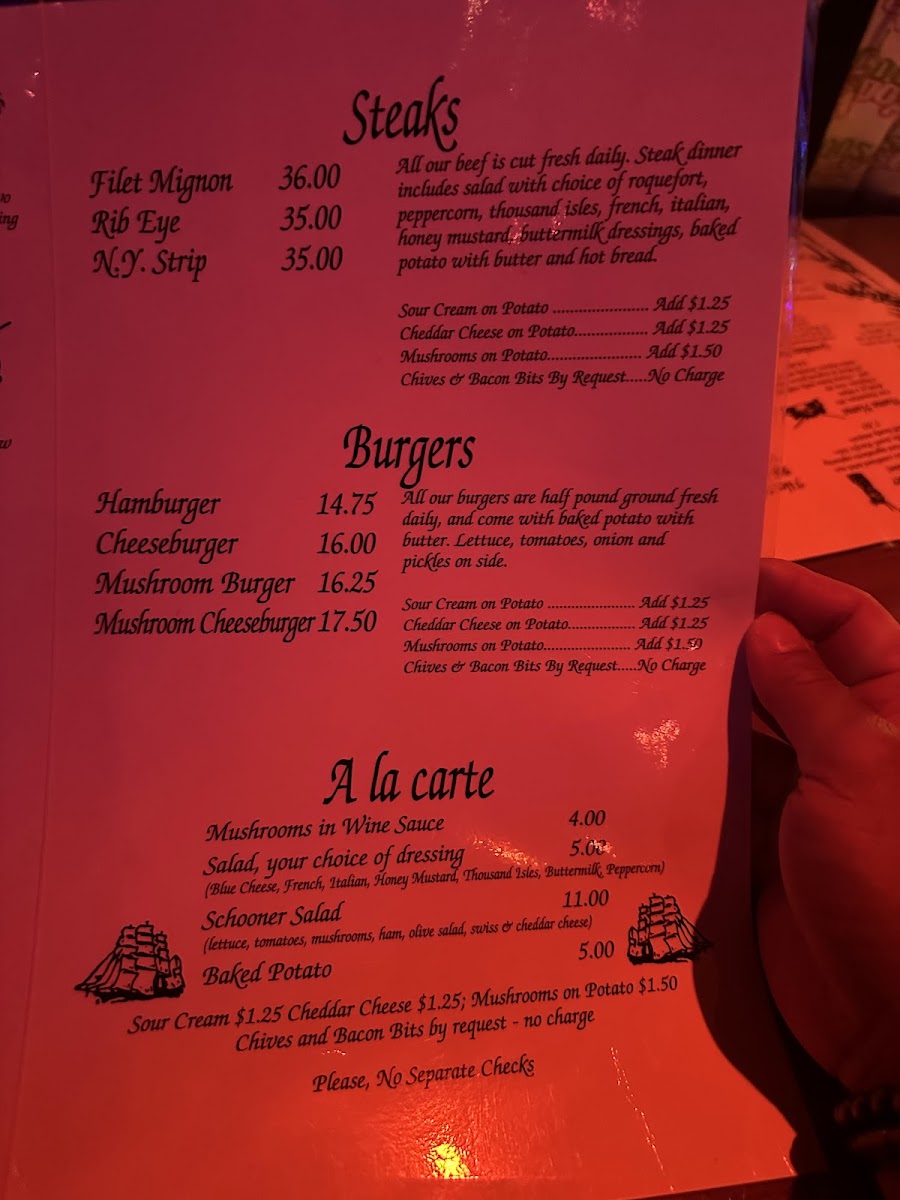 All our beef is cut fresh daily. Steak dinner includes salad with choice of baked potato with butter and hot tuscany bread.